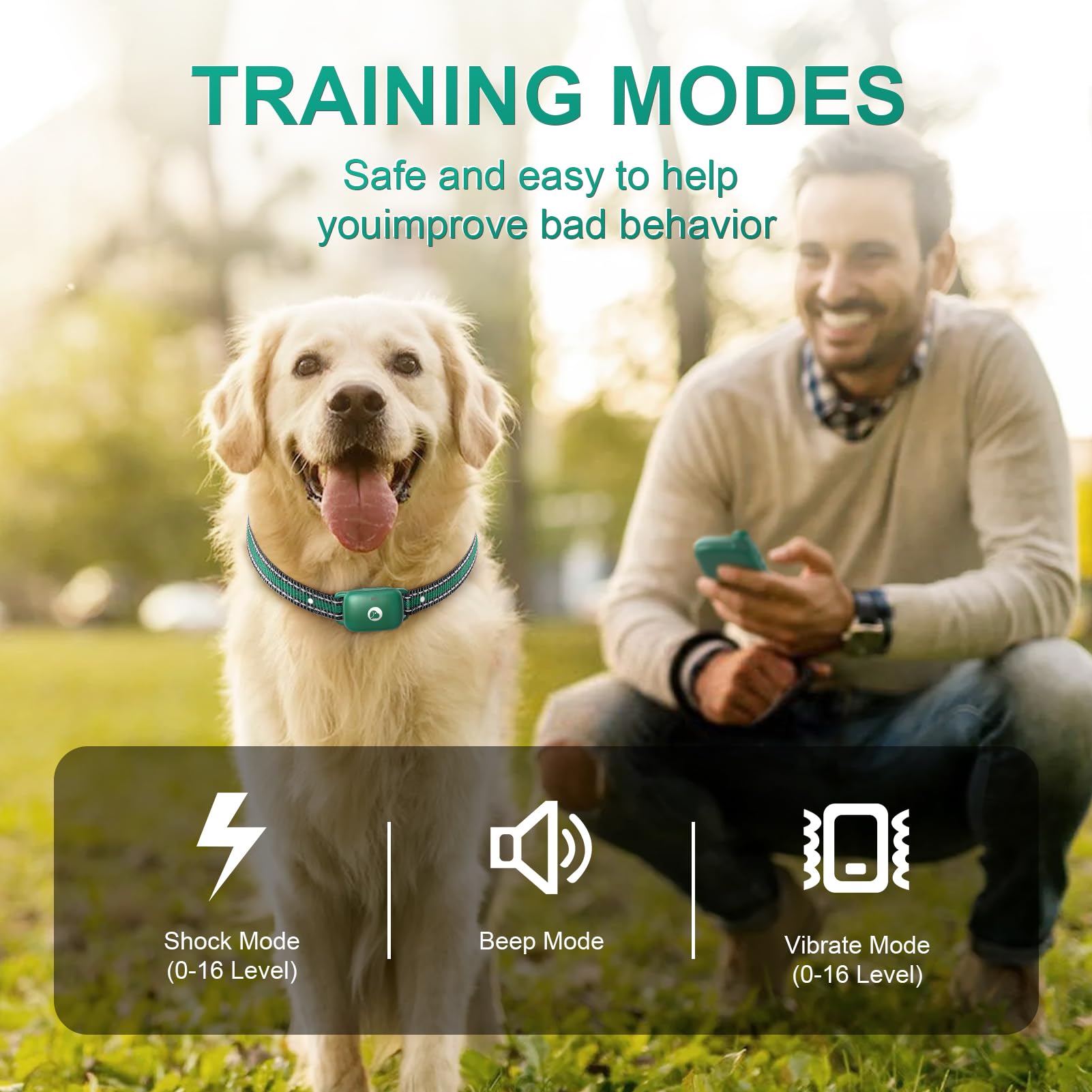 • 【Smart Touchscreen Training with Security Lock】This advanced dog training collar (also known as an e collar or shock collar for dogs) features a responsive touchscreen with 3 training modes: beep, vibration (1-16 levels), and static shock (1-16 adjustable levels). Equipped with a safety lock to prevent accidental operation, it ensures precise and secure control for effective training.